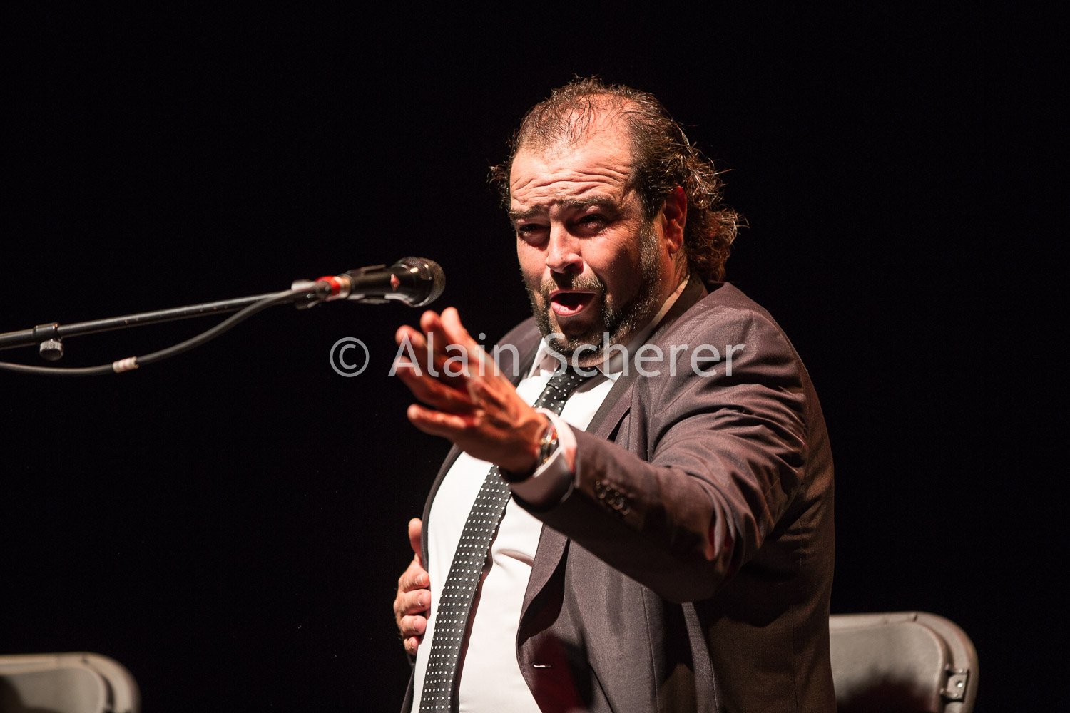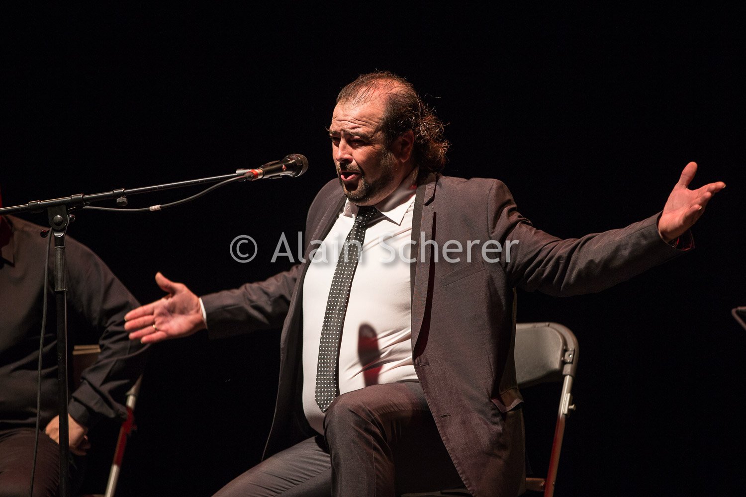 Miguel De TENA Festival de Flamenco Nimes 2016 - La Paloma (FR - 30) Miguel De TENA : chant Francisco PINTO : guitare El ASPIRINA : percussion Joaquín GONZALEZ : palmas et compás Pilar GARCIA : danse